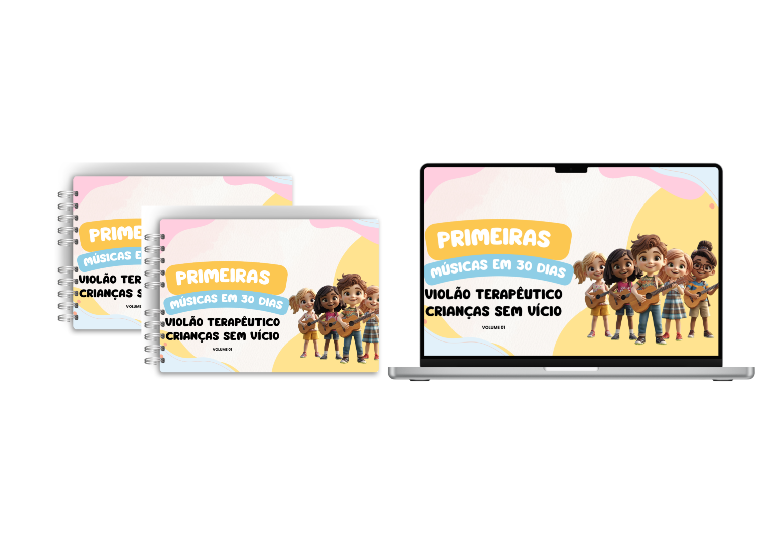 Músicas simplificadas desenhadas para a criança tocar e sentir orgulho logo na primeira semana.